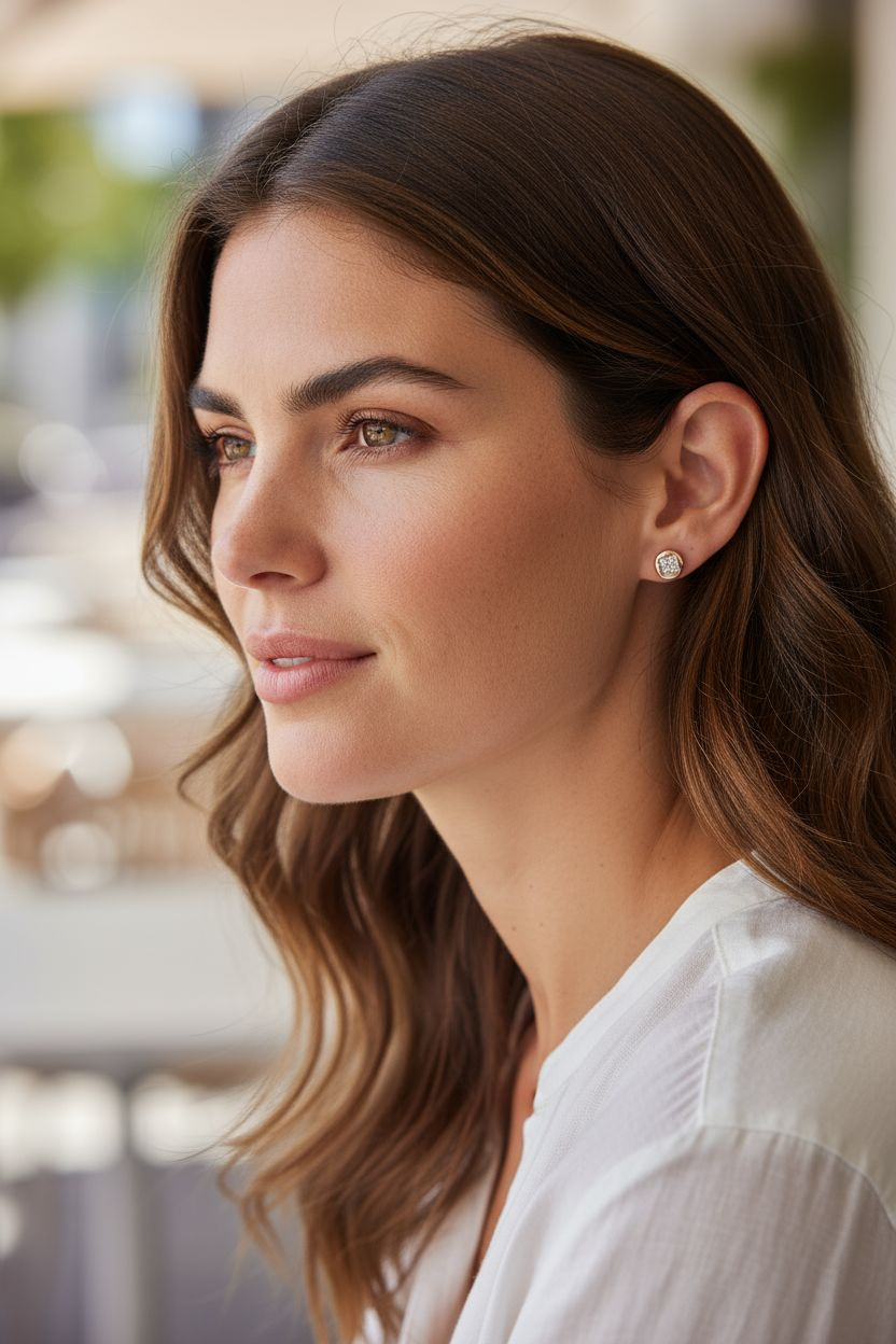 Die „Noa Classy“ Ohrstecker vereinen weiche Rundungen mit einer elegant eckigen Pavé-Fassung im Inneren. Gefertigt aus 925er Sterling Silber und veredelt mit einem funkelnden Micro Pavé-Stein, strahlen sie moderne Raffinesse und feminine Eleganz aus.