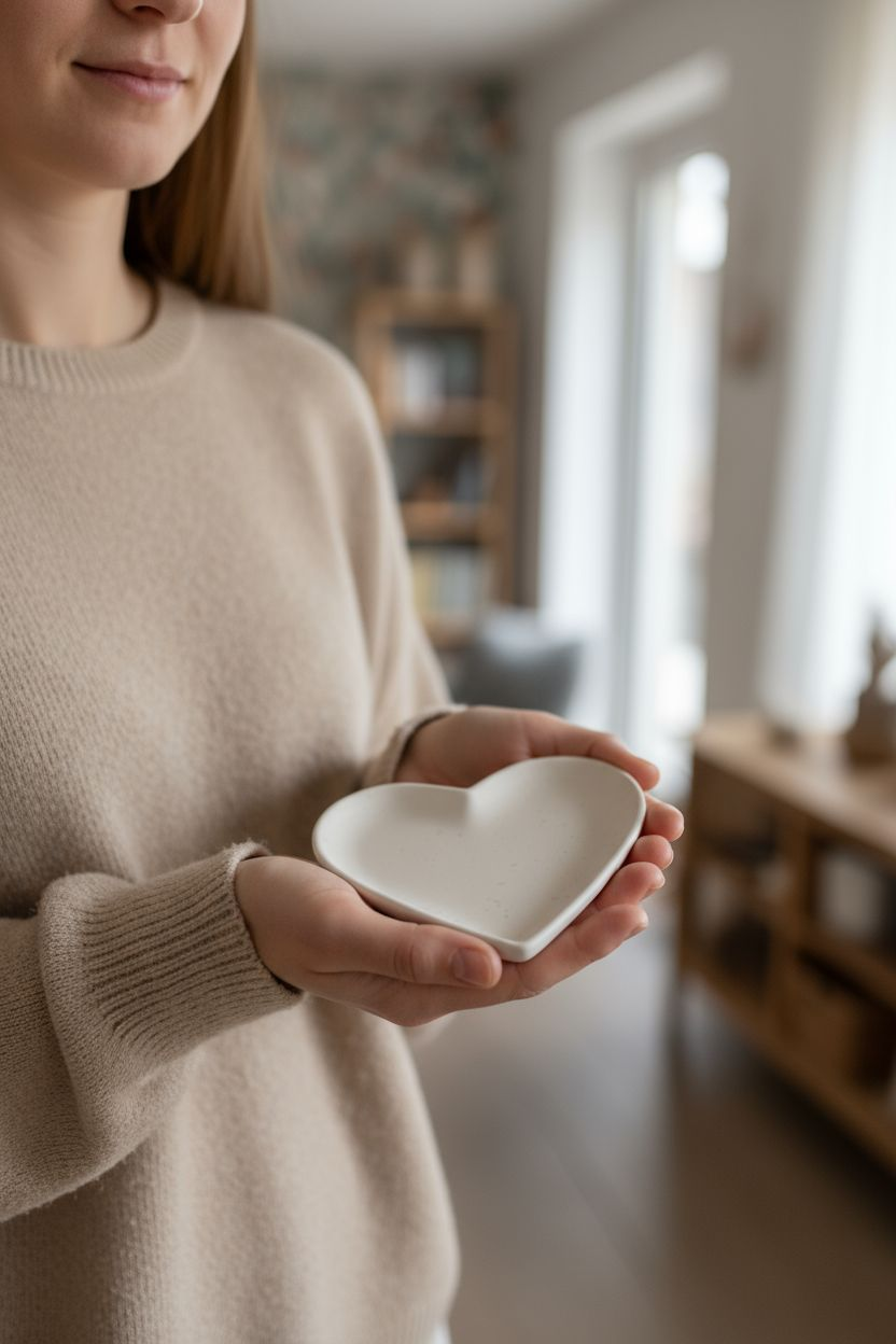 Die Herzschale Aveline besticht durch ihren sanften Creme-Ton – kein reines Weiß, sondern ein warmer, natürlicher Farbton, der Ruhe und Eleganz ausstrahlt. Mit ihrer Größe von ca. 12 cm bietet sie ausreichend Platz für Schmuck, Accessoires oder kleine Andenken und wird so zum stilvollen Blickfang in jedem Raum.